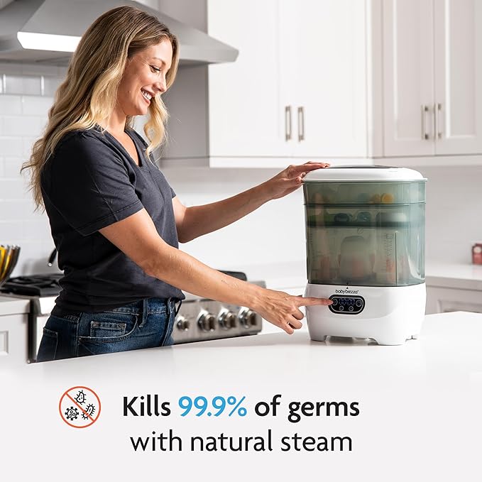 - ELIMINATES 99.9% OF GERMS: Uses natural steam to eliminate 99.9% of harmful bacteria, mold & the yeast that causes thrush in only 10 minutes, then dries automatically with HEPA-filtered, germ-free air; Auto-shuts off when cycle is complete