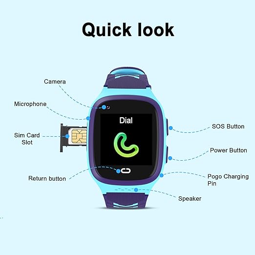 - 👍⌚【Two-way call and SOS】Kids smart watch phone supports two-way high-definition call which is very simple to communicate with child. When in a dangerous state, press SOS button about 3 seconds, the watch will automatically call 3 SOS numbers in 2 rounds until answering the call. Great help for kids in emergency situation.