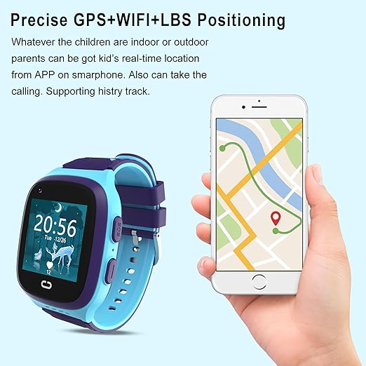 - 👍⌚【Multi-Functions kids Smart Watch】: Kids GPS watch phone include Real Time GPS Position, phone call, video call, SOS Call, Voice Chat, Camera, Photo album, Phone Book, Alarm Clock, Class Mode, Safety Fence, Pedometer, Historical Route etc. This smart watch is a perfect Christmas, birthday gift for your sweety.